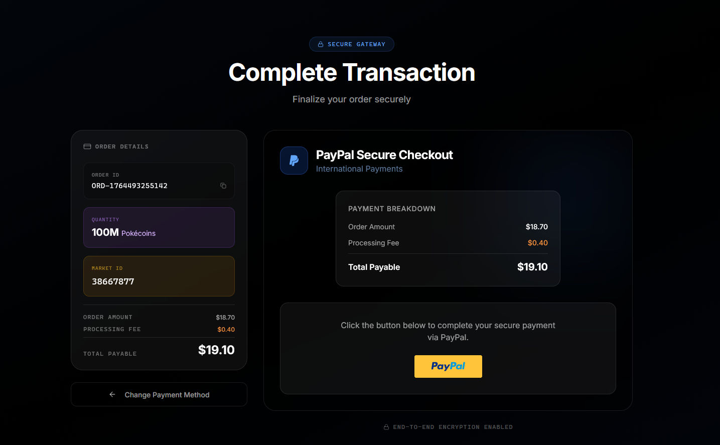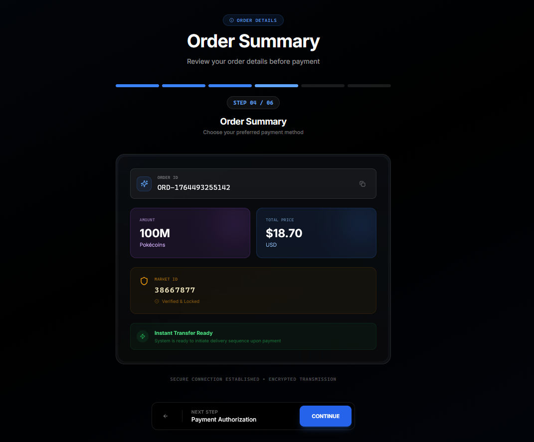 This section confirms:- The market ID where your Pokecoins will be delivered