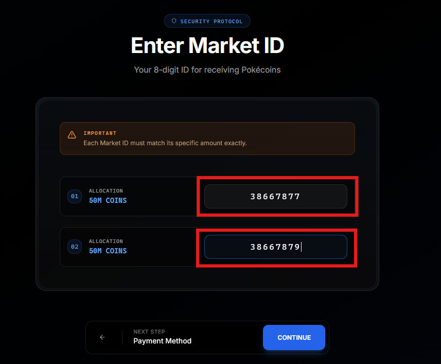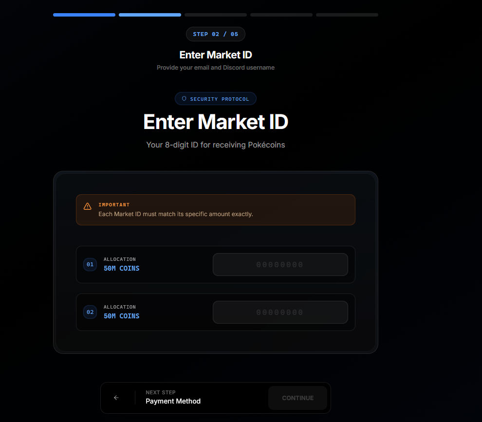 Your market ID is how Pokecoins are delivered to your Poketwo account. This step ensures the delivery goes to the correct destination.