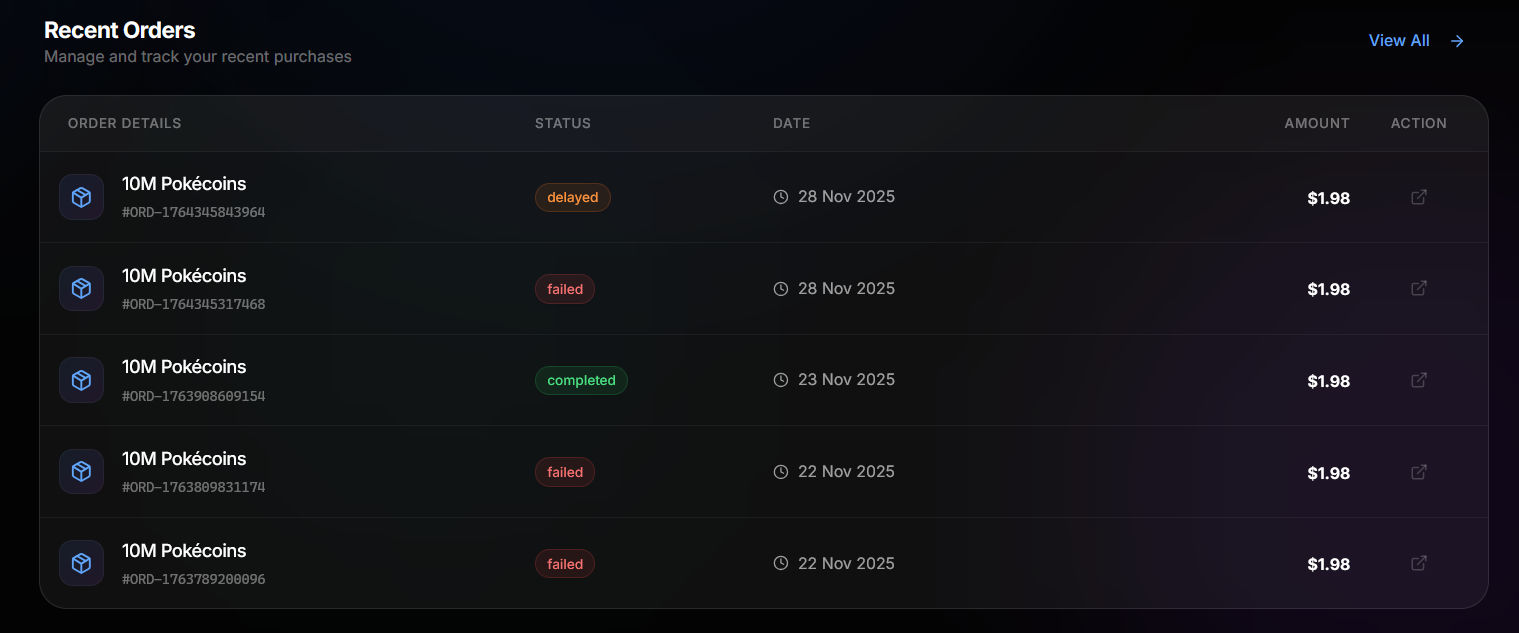 - Total Pokecoins purchased: The cumulative amount of Pokecoins you have purchased across all your orders. This gives you a quick view of your overall purchase volume.